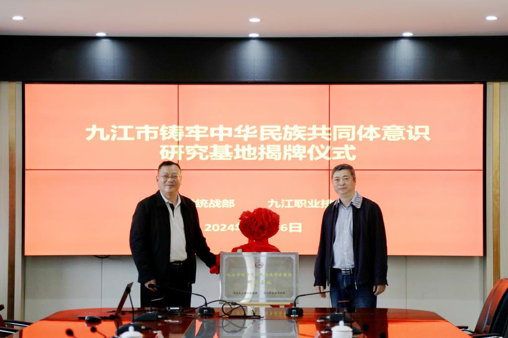 仪式上,胡永红书记与胡定文主任共同为九江市铸牢中华民族共同体意识研究基地揭牌。