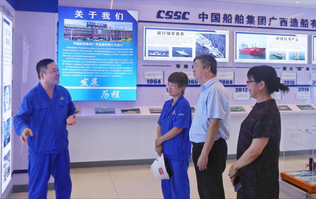 8月7日,胡永红一行调研走访了中国船舶集团广西造船有限公司,实地考察了公司生产车间和船坞码头,与公司党委书记、董事长欧传杰,党委委员、纪委书记陈敏萍,工会主席周宏彪以及部分优秀校友代表进行了座谈。胡永红简要介绍了学校发展历程、办学特色以及专业建设、人才培养等方面情况,对中船广西公司一直以来对学校建设和发展的关心支持表示衷心感谢。他表示,学校正处在全面建设“江西职业技术大学”的新阶段新起点,希望与中船广西公司在更宽领域更深层次开展校企合作,增强学校服务重点产业能力,提升学校整体办学水平,共同为船舶行业企业培养更多高层次高素质技术技能人才。欧传杰代表中船广西公司对胡永红一行的到来表示热烈欢迎,感谢学校为公司培养和输送了大量优秀人才,并介绍了中船广西公司基本情况,以及在技术研发、生产经营等方面取得的成绩。会上,双方还就人才培养、“双师”队伍建设等方面进行了深入交流。